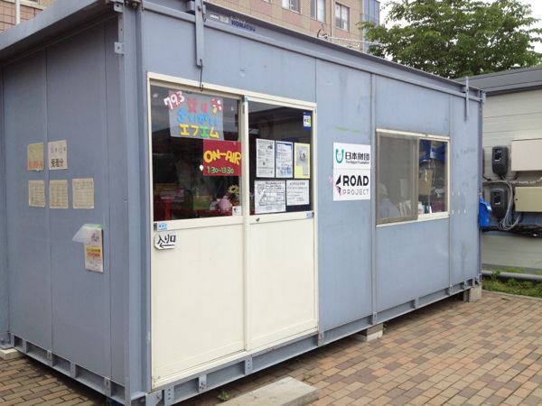 女川町地域医療センター横の女川さいがいFMで、生放送「おながわなう」が放送されていました。