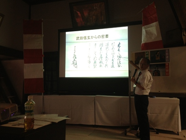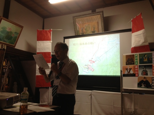 関ヶ原の戦いの後、当時福島城主だった上杉家家臣・本庄繁長公と伊達政宗勢との間で、現在の福島市内で戦いがあり、本庄繁長は伊達勢を破りました。その戦いの内容を、具体的にお話していただきました。勉強になりました。そして、面白かった!話すときの姿、随所随所に机を叩いて、雰囲気を出されていて、話に引き込まれていきました。